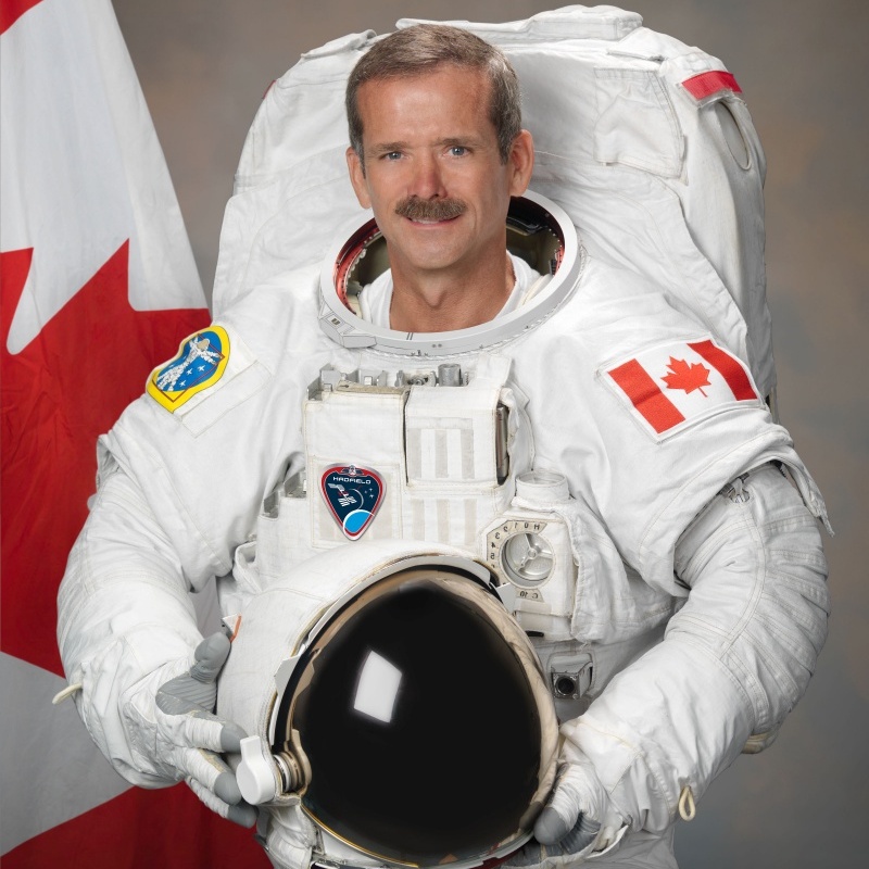 Kanadalı astronot Chris Austin Hadfield, eski bir savaş pilotu, mühendis ve bilim iletişim uzmanıdır. NASA için çeşitli bilimsel çalışmalar yapmış ve uzayda yürüyüş yapan ilk Kanadalı olmuştur. 2 kez NASA Uzay Mekiği ile uzaya gitmiştir. Birincisinde Sovyet MIR uzay istasyonuna yiyecek, su ve bilimsel malzeme sağlanan STS-74 uçuşuna katılmış, ikincisinde Uluslararası Uzay İstasyonu’na (IIS) robotik kol ve yiyecek desteği sağlayan STS-100 uçuşunda uzayda 14 saat 50 dakika serbest yürüyüş yapmıştır.